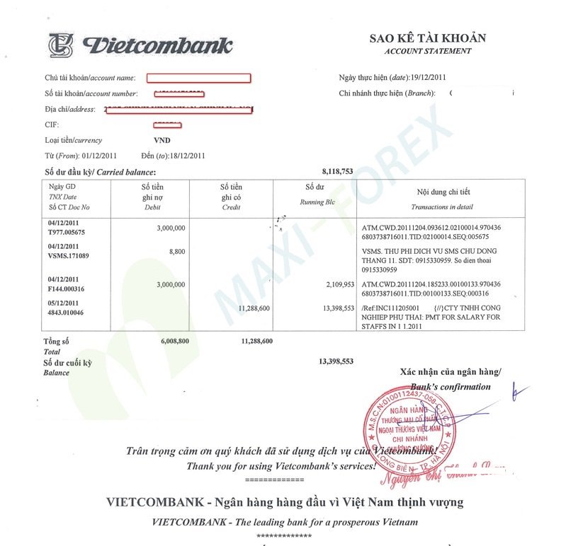 Sau khi yêu cầu ngân hàng sao kê và đóng dấu tròn mộc đỏ, quý khách có thể lấy bản sao kê này để dịch và công chứng dịch dễ dàng.