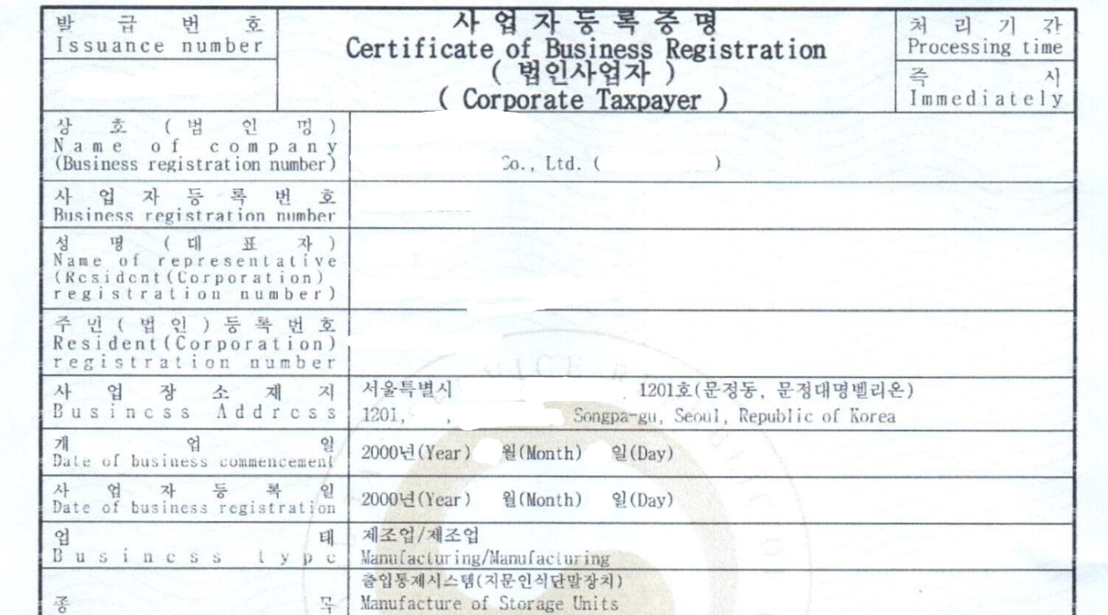 Hợp pháp hóa lãnh sự giấy đăng ký kinh doanh của Hàn Quốc